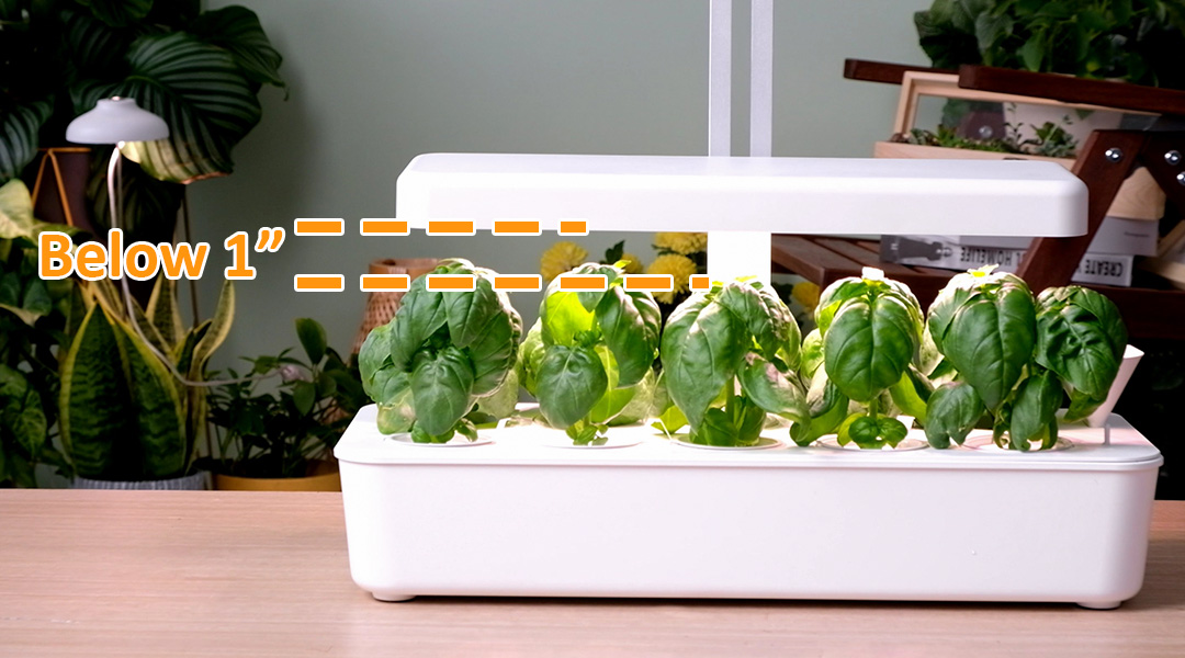 When the plant continues to grow taller and the distance from the light board is less than 1 inch, adjust the light board upward to keep the light board and the plant 1~2 inches, which is beneficial for the plant to obtain enough light.