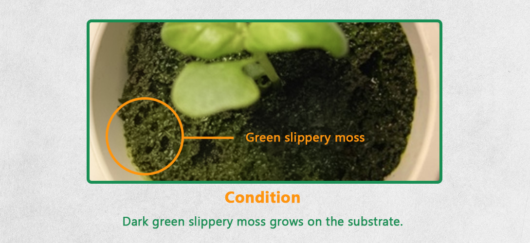 ②Cause: The ambient humidity is too high, the substrate moisture is too high, and the water has nutrients.