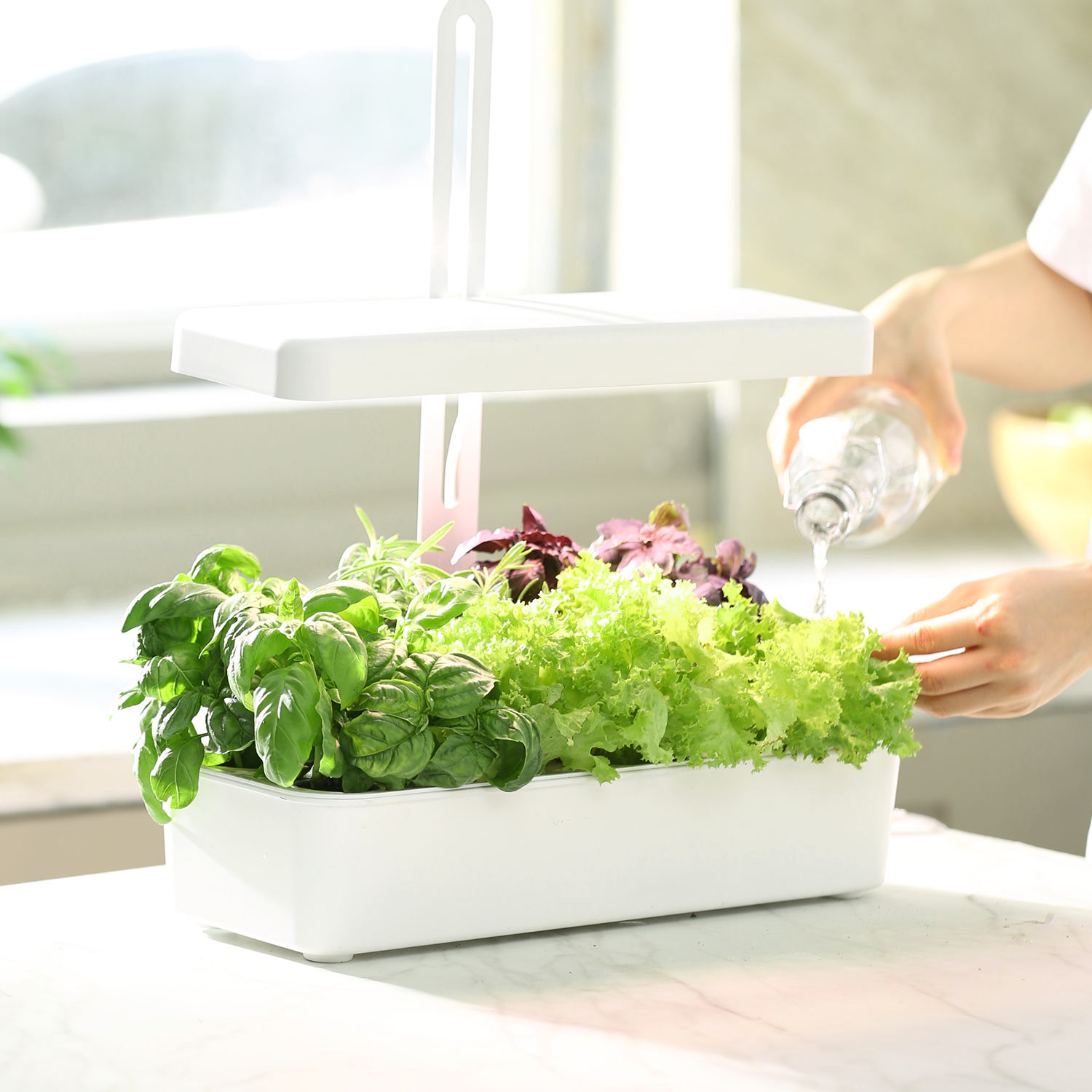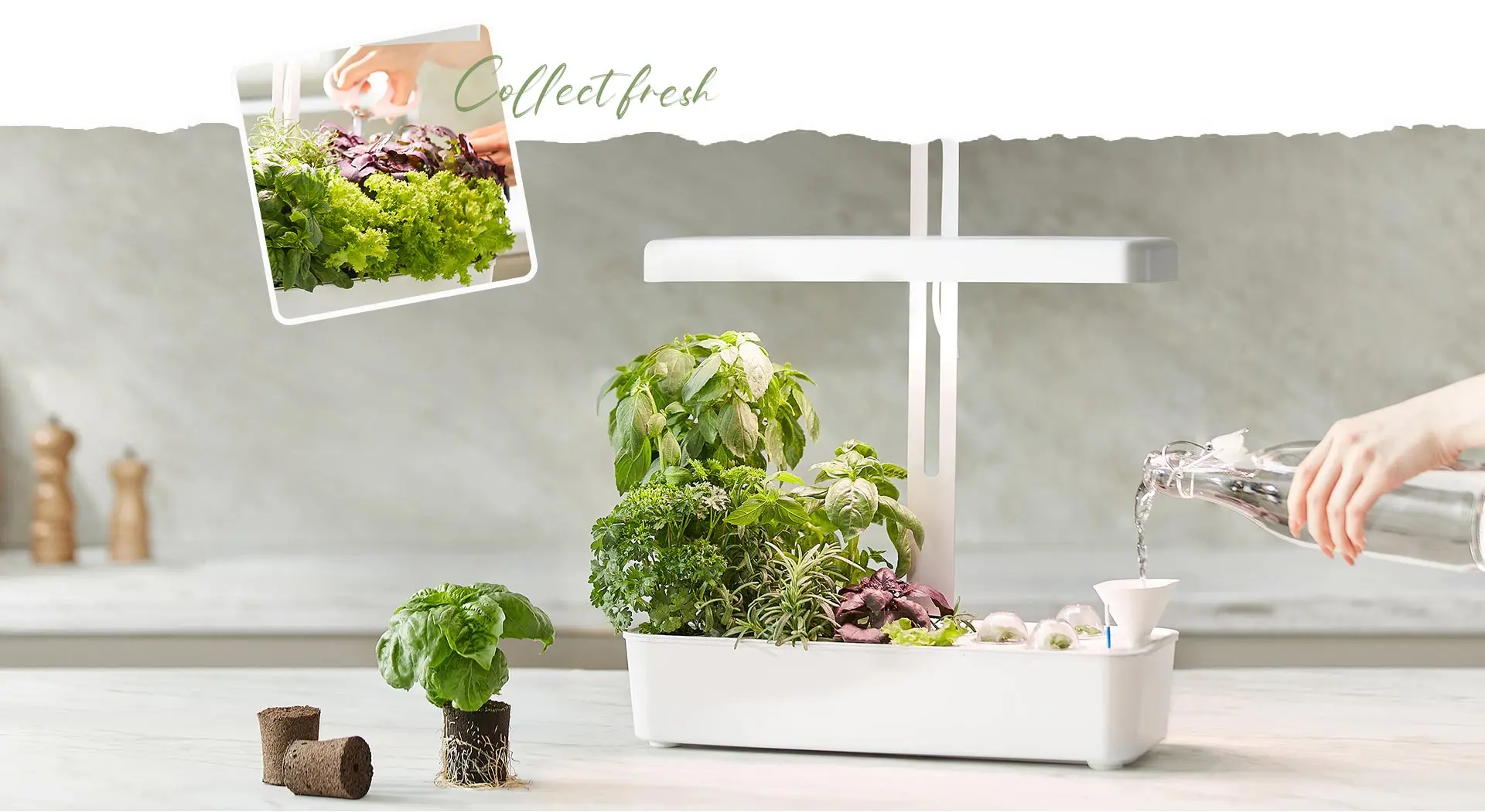 J&C hydroponic grow system kit indoor advanced version added a new element which is a self-watering planter with visible water level indicator, it enables the indoor herb garden have the hydroponic function and meanwhile you can also grow with potting soils or just place your flower pots in the water tank. With 10 ready-to-use smart soil pods and the seeds which you buy online or offline, it will be very easy for you to start growing without purchasing extra liquid plant food.