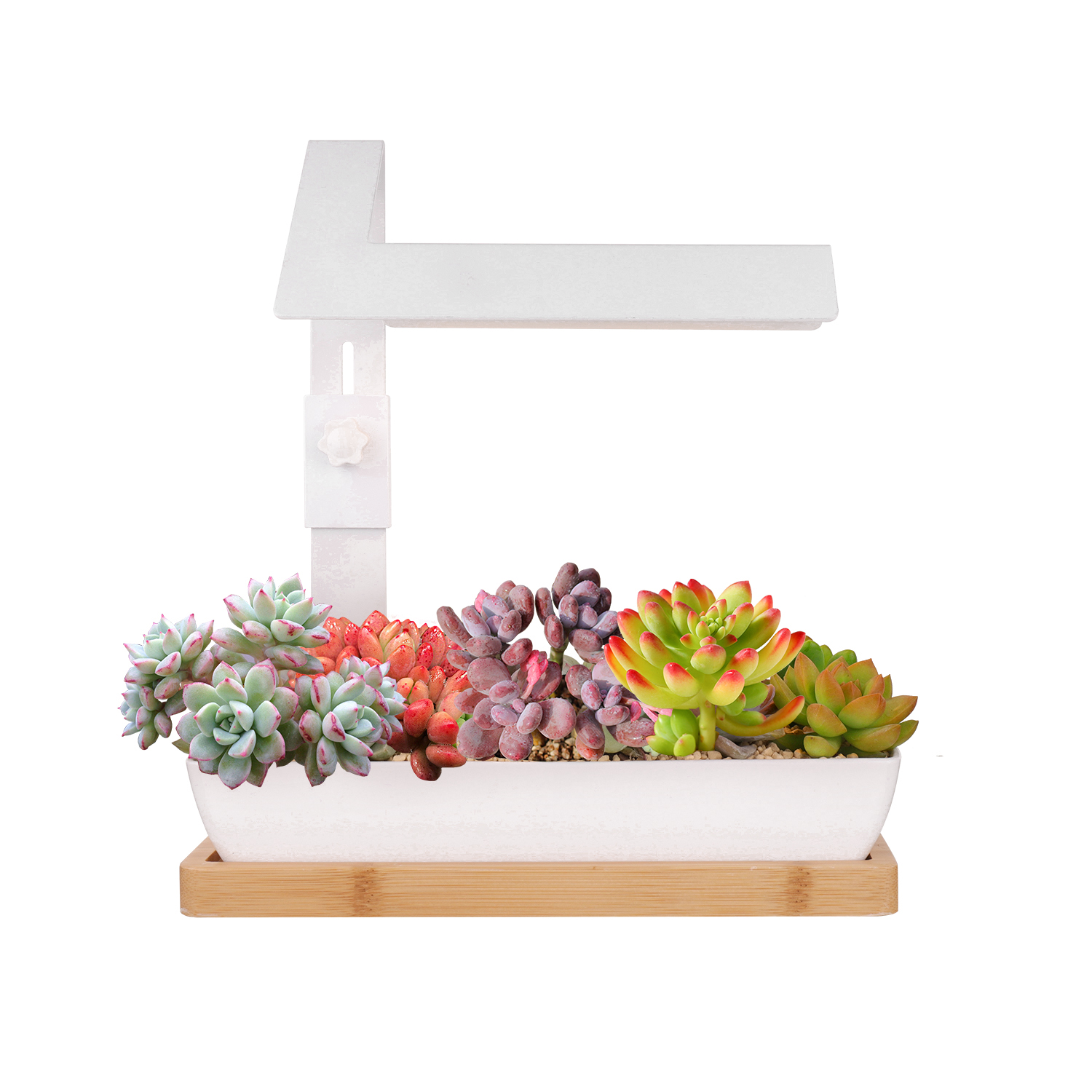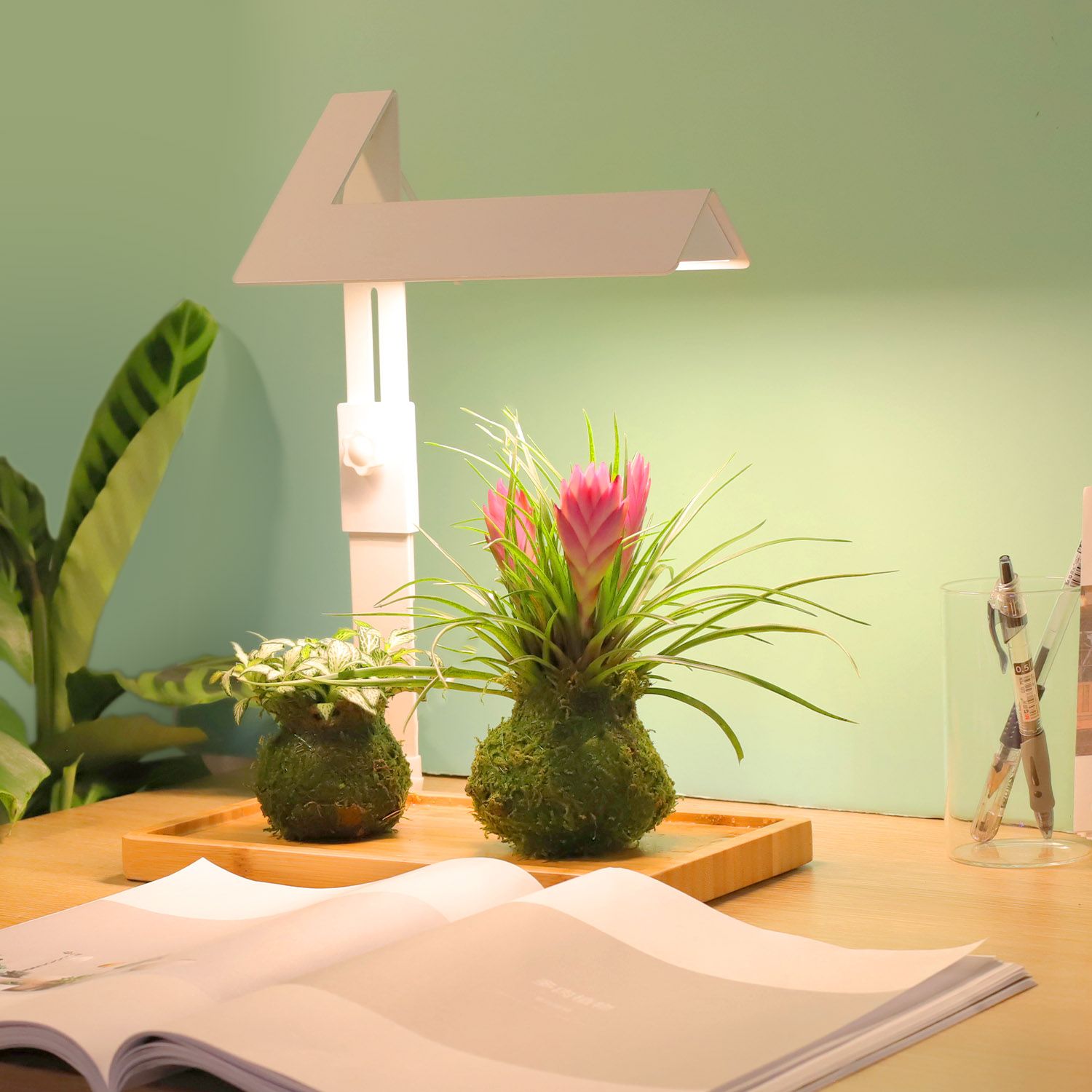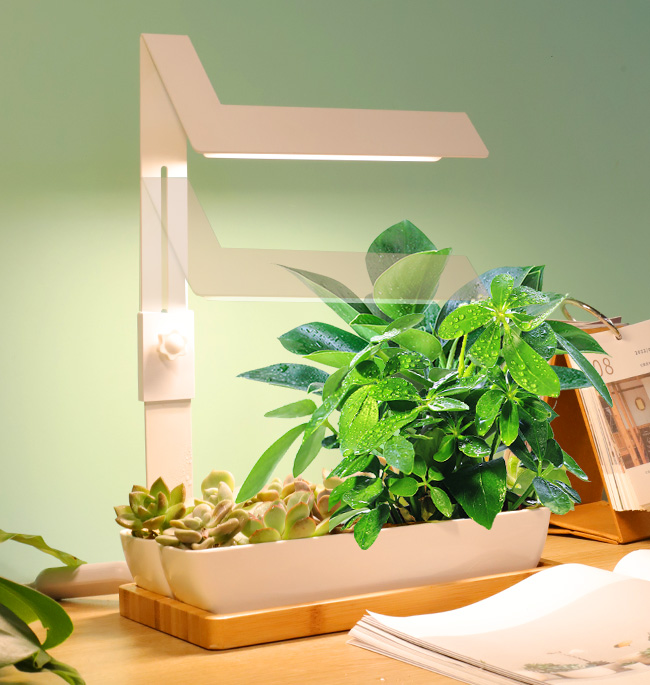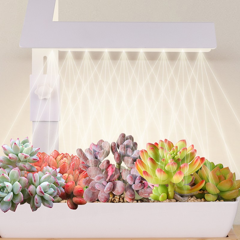 Succulents and the bonsai is popular, they are always small and can be put on the table, when work or surfing the Internet, the small plants can make you feel better. The lighting out is specially designed——full spectrum, promote the growth. The 4000k Anti-glare soft light, and high Ra simulated sunlight, can protect your eyes.