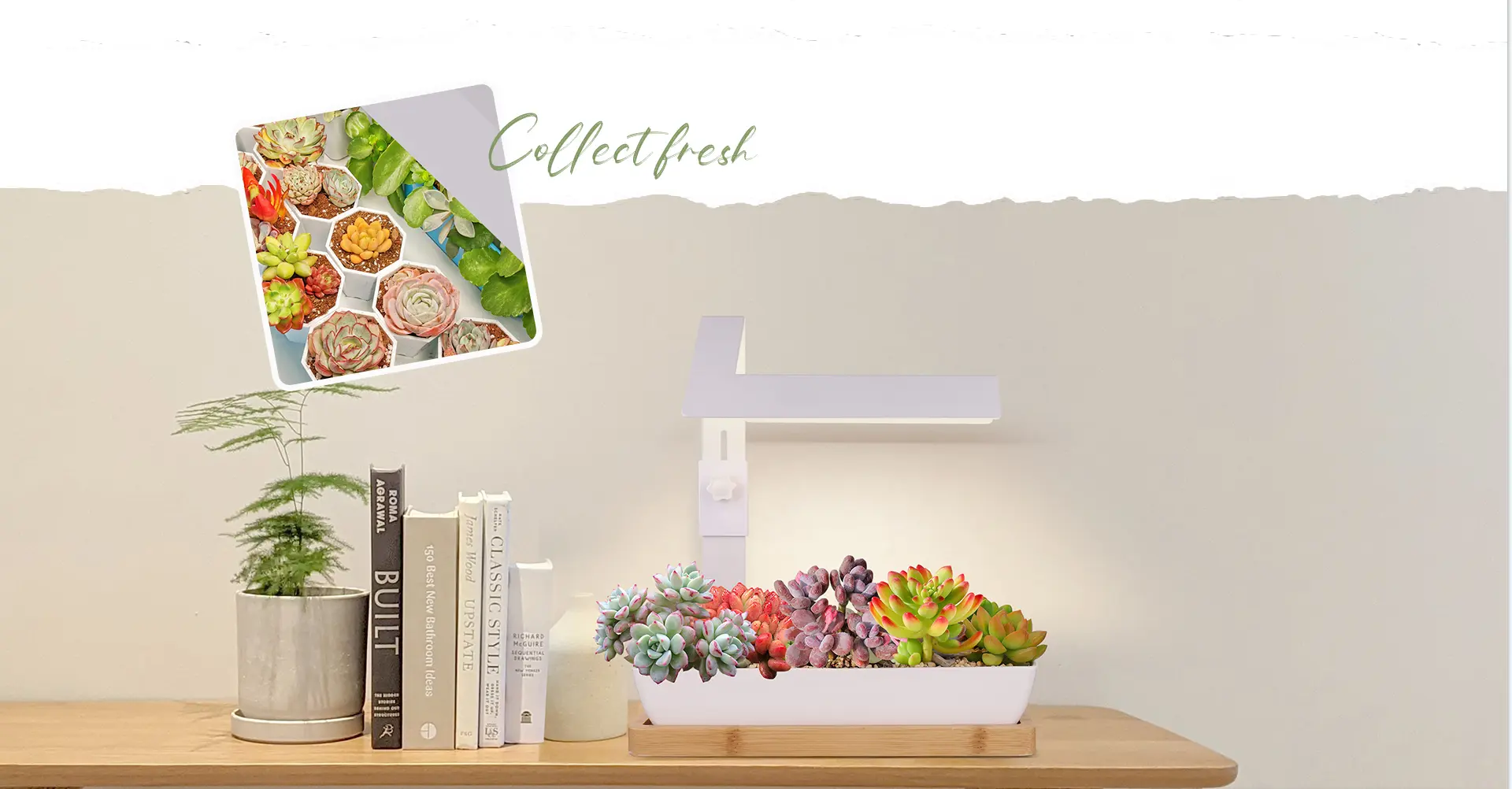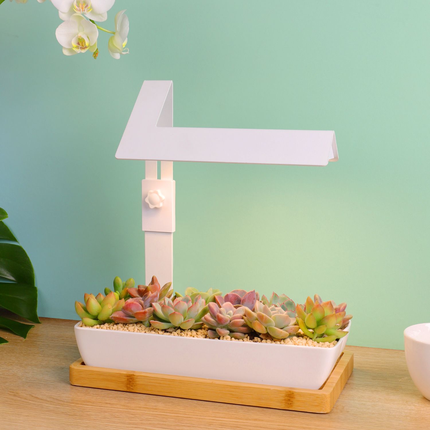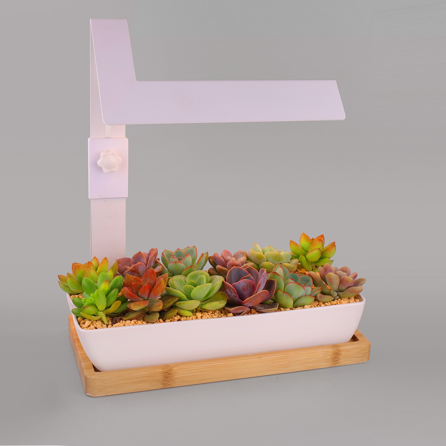 Succulents and the bonsai is popular, they are always small and can be put on the table, when work or surfing the Internet, the small plants can make you feel better. The lighting out is specially designed——full spectrum, promote the growth. The 4000k Anti-glare soft light, and high Ra simulated sunlight, can protect your eyes.