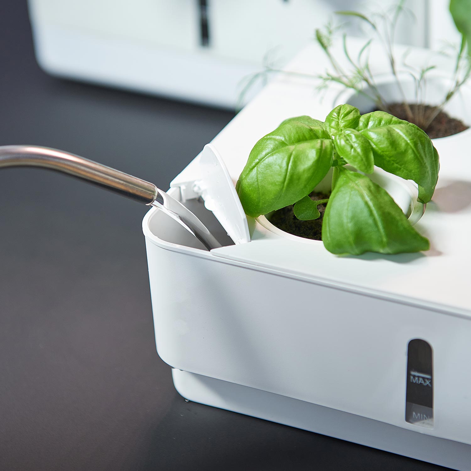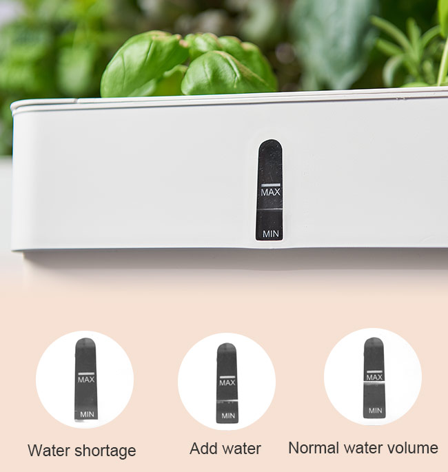 The visible water level window helps you to know the inside water situation clearly. On the window, we also marked MAX, MIN mark, reminding you to correctly watering while growing.