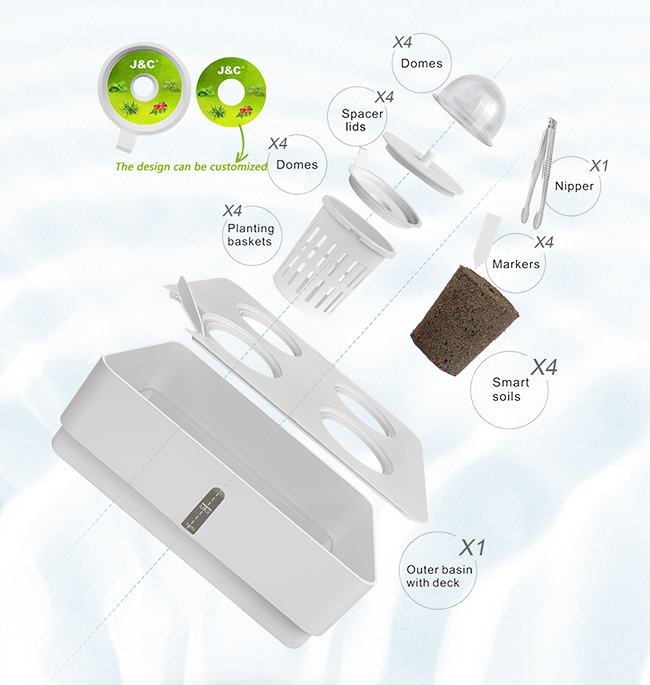 The smart soil included in the grow box is easy to use by just putting the seeds into the pre-drilled planting holes and starting planting. It can last long for whole life of the plants, from seeds to adult plants.